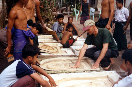 David began teaching rubber mold making and concrete casting in a Burmese Buddhist monastery in 1999, another important and pivotal point in his life. He realized that he could make a contribution as a traveler and do something more meaningful and worthwhile, something that would help the people and culture that he had become so fond of. Since then, David has been back to Burma every year teaching rubber mold making and concrete casting in Burmese Buddhist monasteries. With the help of many friends, he has been able to fund many humanitarian projects in Burma as well. The emotional rewards are so great and satisfying that this is what David wants his life to be about. His love for travel, art and the Burmese culture has grown into something much bigger and greater than himself.