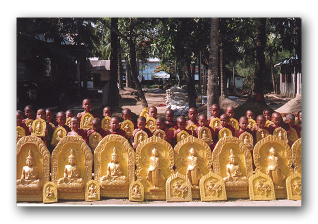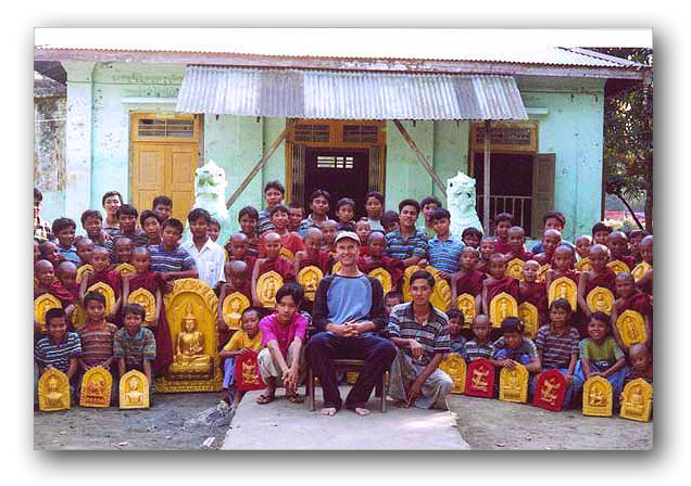 Burma is a Southeast Asian country bordering China, Thailand and Laos. David visited Burma, now known as Myanmar, for the first time in 1984, when tourists could only stay seven days. He returned again in 1994 and has been back every year since. In 1999, David brought five gallons of rubber latex with him on the plane to Myanmar. Once there, he taught rubber mold making and concrete casting in a Myanmar Buddhist monastery. The experience was so rewarding that it became a pivotal point in his life; he has been teaching mold making and concrete casting in Myanmar Buddhist monasteries every year since then.